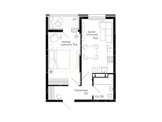 Общая площадь 28,1 кв.м. + утепленный балкон.