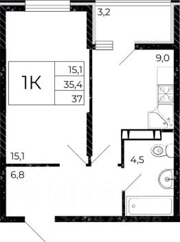 Общая площадь 28,1 кв.м. + утепленный балкон.