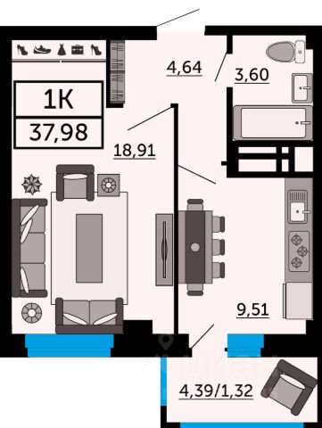 Квартира без отделки, что дает вам возможность воплотить любые дизайнерские идеи. Планировка предусматривает одну комнату и совмещенный санузел. Из окон открывается вид на улицу, а наличие лоджии добавляет пространство для отдыха и уединения.