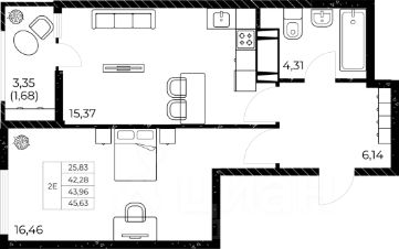 Продаётся 1-комнатная квартира в строящемся доме (5.1 (2.45) секция), срок сдачи: II-кв. 2026, общей площадью 31.45 кв.м., на 10 этаже. "ГРИНСАЙД" от "СК10" - зелёный жилой квартал в географическом центре Ростова-на-Дону. Комплекс расположен в границах трёх улиц - Ленина, Нагибина и Нансена. Центр философии "ГРИНСАЙД" - гармоничная жизнь для людей любого возраста. Для этого мы создаём новую инфраструктуру, которая будет реализована через смарт-технологии. Жилой квартал спрятан от посторонних глаз, но в то же время находится в шаге от кипящей городской жизни."ГРИНСАЙД" создаёт комфортные условия для всех жильцов. Для детей разных возрастных групп предусмотрены отдельные площадки.Взрослым тоже будет чем заняться: уютные мангальные зоны, беседки и другие места отдыха - отличный выход, если надо пожарить вкусный шашлык, но ехать никуда не хочется.По центру квартала пройдёт зелёная аллея - композиция из моста с часами и прогулочных зон.