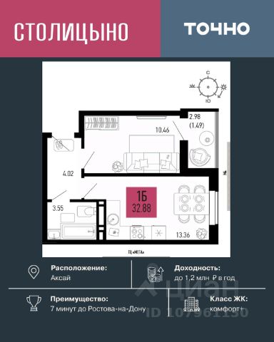 Литер 3.2, 14 этаж, 375. Микрорайон "Придонье" - прекрасная возможность жить в спокойном, зеленом и комфортном месте, всего в 7 минутах езды от Ростова-на-Дону. Небольшой и уютный Аксай создан именно для того, чтобы остановиться, провести время с семьей и отдохнуть от столичного ритма, при этом все возможности мегаполиса остаются под рукой. Квартира находится в современном микрорайоне с развитой инфраструктурой. Идеальный вариант для тех, кто ищет гармонию между тишиной, пространством для жизни и близостью к большому городу. Звоните для всех деталей и просмотра. Вся необходимая инфраструктура в пешей доступности Продуманное содержание Просторные дворы Безбарьерная среда Все для детей всех возрастов Школа на 1 810 мест Два детских сада, общая вместимость 770 мест Две Поликлиники Пожарное депо на 6 машин Опорный пункт полиции Станция скорой помощи на 2 бригады Бульвар Летний кинотеатр Зона для настольных игр Тропа здоровья Вело-беговая дорожка Воркаут зоны для взрослых и детей Зоны отдыха и релакса Тихие зоны с качелями и навесами Площадки для выгула собак + лапомойки Подземный и наземный паркинг Зарядные станции для электромобилей Видеонаблюдение Умная система контроля посетителей Современные умные домофоны Приобрести квартиру можно одним из способов: -субсидированная семейная ипотека от 3,5 % на весь срок -рассрочка -оплата наличными -дистанционная покупка Позвоните сейчас и забронируйте квартиру со скидкой!