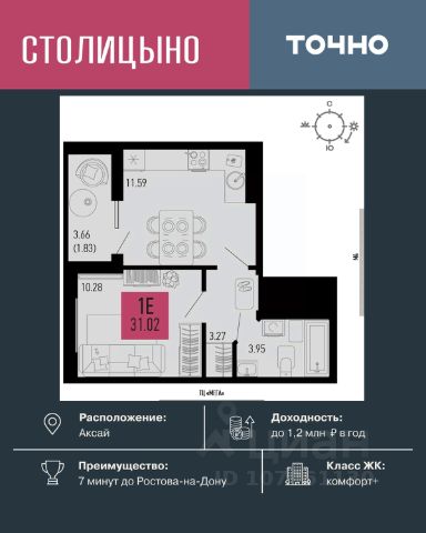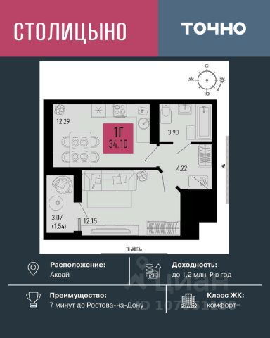 Литер 3.3, 5 этаж, 740. Микрорайон "Придонье" - прекрасная возможность жить в спокойном, зеленом и комфортном месте, всего в 7 минутах езды от Ростова-на-Дону. Небольшой и уютный Аксай создан именно для того, чтобы остановиться, провести время с семьей и отдохнуть от столичного ритма, при этом все возможности мегаполиса остаются под рукой. Квартира находится в современном микрорайоне с развитой инфраструктурой. Идеальный вариант для тех, кто ищет гармонию между тишиной, пространством для жизни и близостью к большому городу. Звоните для всех деталей и просмотра. Вся необходимая инфраструктура в пешей доступности Продуманное содержание Просторные дворы Безбарьерная среда Все для детей всех возрастов Школа на 1 810 мест Два детских сада, общая вместимость 770 мест Две Поликлиники Пожарное депо на 6 машин Опорный пункт полиции Станция скорой помощи на 2 бригады Бульвар Летний кинотеатр Зона для настольных игр Тропа здоровья Вело-беговая дорожка Воркаут зоны для взрослых и детей Зоны отдыха и релакса Тихие зоны с качелями и навесами Площадки для выгула собак + лапомойки Подземный и наземный паркинг Зарядные станции для электромобилей Видеонаблюдение Умная система контроля посетителей Современные умные домофоны Приобрести квартиру можно одним из способов: -субсидированная семейная ипотека от 3,5 % на весь срок -рассрочка -оплата наличными -дистанционная покупка Позвоните сейчас и забронируйте квартиру со скидкой! Купить 1-комнатную квартиру на 5 этаже в Аксае.