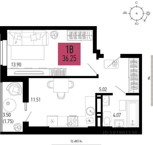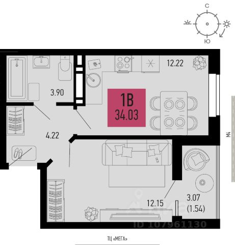 Пpодается светлая уютная 1 к. квaртиpа.Общая площадь: 34.6 м².Площадь кухни: 6.9 м²