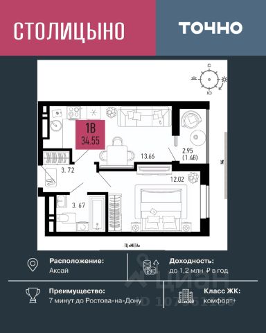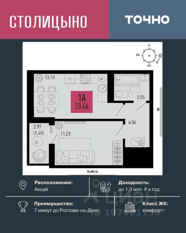 Литер 3.3, 7 этаж, 756. Микрорайон "Придонье" - прекрасная возможность жить в спокойном, зеленом и комфортном месте, всего в 7 минутах езды от Ростова-на-Дону. Небольшой и уютный Аксай создан именно для того, чтобы остановиться, провести время с семьей и отдохнуть от столичного ритма, при этом все возможности мегаполиса остаются под рукой. Квартира находится в современном микрорайоне с развитой инфраструктурой. Идеальный вариант для тех, кто ищет гармонию между тишиной, пространством для жизни и близостью к большому городу. Звоните для всех деталей и просмотра. Вся необходимая инфраструктура в пешей доступности Продуманное содержание Просторные дворы Безбарьерная среда Все для детей всех возрастов Школа на 1 810 мест Два детских сада, общая вместимость 770 мест Две Поликлиники Пожарное депо на 6 машин Опорный пункт полиции Станция скорой помощи на 2 бригады Бульвар Летний кинотеатр Зона для настольных игр Тропа здоровья Вело-беговая дорожка Воркаут зоны для взрослых и детей Зоны отдыха и релакса Тихие зоны с качелями и навесами Площадки для выгула собак + лапомойки Подземный и наземный паркинг Зарядные станции для электромобилей Видеонаблюдение Умная система контроля посетителей Современные умные домофоны Приобрести квартиру можно одним из способов: -субсидированная семейная ипотека от 3,5 % на весь срок -рассрочка -оплата наличными -дистанционная покупка Позвоните сейчас и забронируйте квартиру со скидкой!