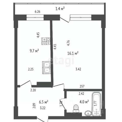 • Общая площадь: 30,4 м²