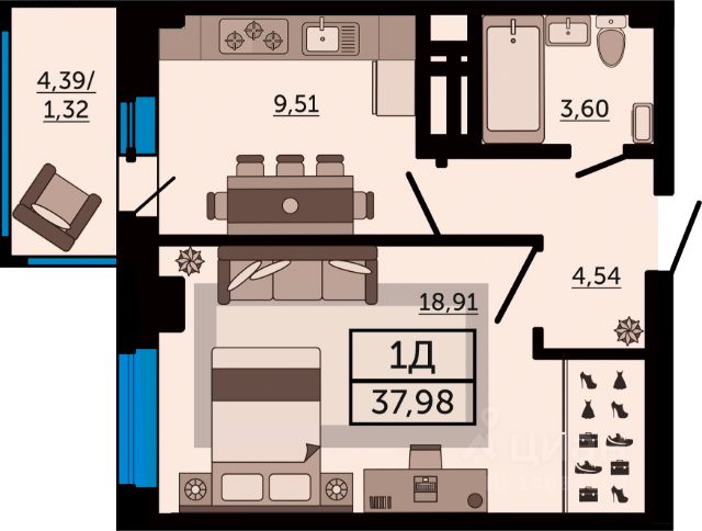 В продаже однокомнатная квартира в новостройке, в стройварианте. Лучшее решение для молодой семьи, под сдачу или для инвестиций. Планировка квадратной формы, в которой есть всё необходимое для комфортной жизни. Просторная прихожая, комната с углублением, которое можно использовать как место для хранения вещей. Благодаря классическому размещению помещений - вы можете воплотить в жизнь любые дизайнерские решения. Наиболее выгодная цена на этапе строительства. Успейте забронировать квартиру напрямую от застройщика. В сотрудничестве с ведущими банками России предлагаем вам выгодные условия при приобретении квартиры в ипотеку в жилом комплексе: Первоначальный взнос: от 20% (обязательно). Процентные ставки: от 6% годовых (условия действуют по программе "Семейная ипотека"). Дом сдан. Только сейчас, при покупке квартиры ставка 0,11% на первые 12 месяцев! ЖК FOUR PREMIERS это современный жилой комплекс, который располагается в центре города по адресу, ул. Мечникова, 110Г. Данный проект выделяется яркой архитектурой в стиле лофт и множеством других особенностей: - Монолитно-каркасная технология строительства. - Облицовка кирпич в соответствии с ГОСТом. - Срок ввода в эксплуатацию IV квартал 2025 года. - 4 литера по 24 этажа. - В центре города. - 2-х уровневый подземный паркинг. - Магазины на 1-м этаже. - Зоны отдыха на крыше. - Собственный спортзал в доме. - Воркаут-зона. О застройщике Московская Строительная Компания ТОП-застройщик по объему текущего строительства жилья и ввода в эксплуатацию в Ростовской области. На рынке с 2012 года, за это время возведено 538 000 кв.м. жилья. На этапе строительства 325 000 кв.м. в 7 жилых комплексах г. Ростова-на-Дону. ГК "МСК" работает в соответствии с 214-ФЗ. Способ оплаты: При покупке квартиры от застройщика "МСК" Вы можете использовать все популярные сейчас способы: - 100% оплата. Когда у Вас есть вся сумма в наличии. - Рассрочка (подробные условия и размеры первоначального взноса уточняйте у менеджеров застройщика). Первоначальный взнос и график платежей определяем индивидуально. - Ипотека. Сотрудничаем с ведущими банками России и поможем подобрать выгодную ипотечную программу. - Материнский капитал или сертификат АЖП. Можно использовать на участие в долевом строительстве или на погашение ипотеки. Если у Вас возникли вопросы, позвоните или напишите нам. Менеджер все подробно расскажет и поберет для Вас лучший вариант. Бронирование квартиры совершенно бесплатно! Вам ответят в течении 30 минут. Продам 1-комнатную квартиру в стиле loft в Ростовской области.