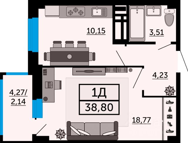В продаже однокомнатная квартира в новостройке, в стройварианте. Лучшее решение для молодой семьи, под сдачу или для инвестиций. В данной планировке есть всё для воплощения любых дизайнерских решений. В просторной прихожей - место для хранения вещей, а в комнате спроектировано углубление с окном, здесь можно расположить рабочую зону или дополнительное место для отдыха. Наиболее выгодная цена на начальном этапе строительства. Успейте забронировать квартиру напрямую от застройщика. В сотрудничестве с ведущими банками России предлагаем вам выгодные условия при приобретении квартиры в ипотеку в жилом комплексе: Первоначальный взнос: от 20% (обязательно). Процентные ставки: от 6% годовых (условия действуют по программе "Семейная ипотека"). Срок ввода в эксплуатацию 4 квартал 2028 года. СУПЕР ПРЕДЛОЖЕНИЕ: без платежа до 30.05.2027 г.; первоначальный взнос составляет от 20%; остаток суммы необходимо внести в течение месяца после окончания льготного периода. Успейте приобрести трехкомнатную квартир со скидкой 50% на зависимый паркинг. Только сейчас, при покупке квартиры доступен дисконт на ставку: до -3,8% по программе "Семейная ипотека". Ставка от 2,2% (срок действия определяется индивидуально)! ЖК FOUR PREMIERS это современный жилой комплекс, который располагается в центре города по адресу, ул. Мечникова, 110Г. Данный проект выделяется яркой архитектурой в стиле лофт и множеством других особенностей: - Монолитно-каркасная технология строительства. - Облицовка кирпич в соответствии с ГОСТом. - Срок ввода в эксплуатацию IV квартал 2025 года. - 4 литера по 24 этажа. - В центре города. - 2-х уровневый подземный паркинг. - Магазины на 1-м этаже. - Зоны отдыха на крыше. - Собственный спортзал в доме. - Воркаут-зона. О застройщике Московская Строительная Компания ТОП-застройщик по объему текущего строительства жилья и ввода в эксплуатацию в Ростовской области. На рынке с 2012 года, за это время возведено 538 000 кв.м. жилья. На этапе строительства 325 000 кв.м. в 7 жилых комплексах г. Ростова-на-Дону. ГК "МСК" работает в соответствии с 214-ФЗ. Способ оплаты: При покупке квартиры от застройщика "МСК" Вы можете использовать все популярные сейчас способы: - 100% оплата. Когда у Вас есть вся сумма в наличии. - Рассрочка (подробные условия и размеры первоначального взноса уточняйте у менеджеров застройщика). Первоначальный взнос и график платежей определяем индивидуально. - Ипотека. Сотрудничаем с ведущими банками России и поможем подобрать выгодную ипотечную программу. - Материнский капитал или сертификат АЖП. Можно использовать на участие в долевом строительстве или на погашение ипотеки. Если у Вас возникли вопросы, позвоните или напишите нам. Менеджер все подробно расскажет и поберет для Вас лучший вариант. Бронирование квартиры совершенно бесплатно! Вам ответят в течении 30 минут. Продам 1-комнатную квартиру в стиле loft в Ростовской области.