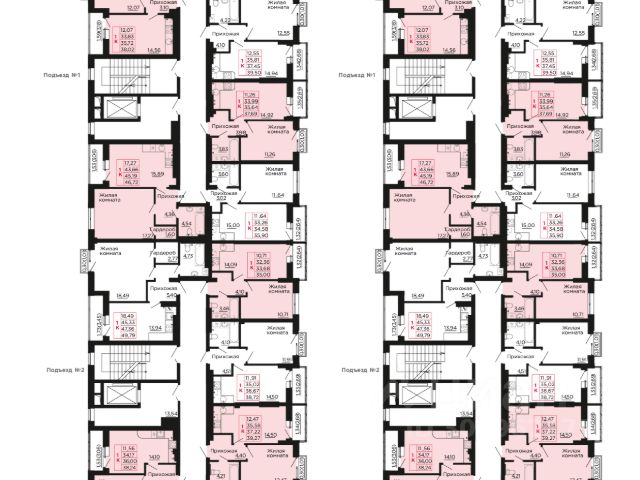 • Всего 57 квартир на этаже