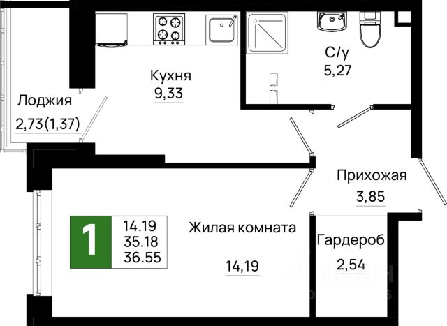 Продаётся 1-комнатная квартира в сданном доме (Уланская, 17с1 (Участок 13121, Литер 01)), срок сдачи: IV-кв. 2023, общей площадью 37.73 кв.м., на 19 этаже. ГOTOBЫЙ PЕМОНТ ПОД КЛЮЧ