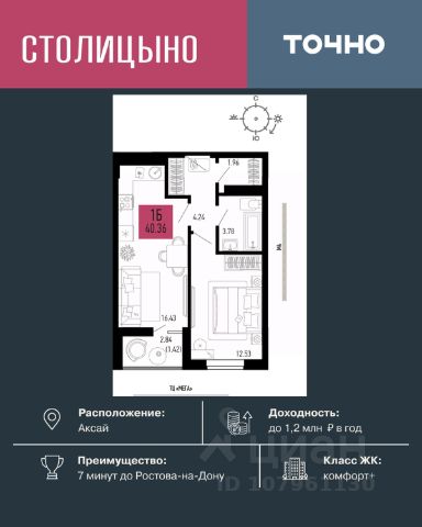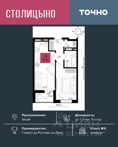 Литер 3.2, 2 этаж, 279. Микрорайон "Придонье" - прекрасная возможность жить в спокойном, зеленом и комфортном месте, всего в 7 минутах езды от Ростова-на-Дону. Небольшой и уютный Аксай создан именно для того, чтобы остановиться, провести время с семьей и отдохнуть от столичного ритма, при этом все возможности мегаполиса остаются под рукой. Квартира находится в современном микрорайоне с развитой инфраструктурой. Идеальный вариант для тех, кто ищет гармонию между тишиной, пространством для жизни и близостью к большому городу. Звоните для всех деталей и просмотра. Вся необходимая инфраструктура в пешей доступности Продуманное содержание Просторные дворы Безбарьерная среда Все для детей всех возрастов Школа на 1 810 мест Два детских сада, общая вместимость 770 мест Две Поликлиники Пожарное депо на 6 машин Опорный пункт полиции Станция скорой помощи на 2 бригады Бульвар Летний кинотеатр Зона для настольных игр Тропа здоровья Вело-беговая дорожка Воркаут зоны для взрослых и детей Зоны отдыха и релакса Тихие зоны с качелями и навесами Площадки для выгула собак + лапомойки Подземный и наземный паркинг Зарядные станции для электромобилей Видеонаблюдение Умная система контроля посетителей Современные умные домофоны Приобрести квартиру можно одним из способов: -субсидированная семейная ипотека от 3,5 % на весь срок -рассрочка -оплата наличными -дистанционная покупка Позвоните сейчас и забронируйте квартиру со скидкой! Купить 1-комнатную квартиру в новостройке в Аксайском районе Ростовской области.