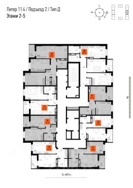 • Всего 57 квартир на этаже