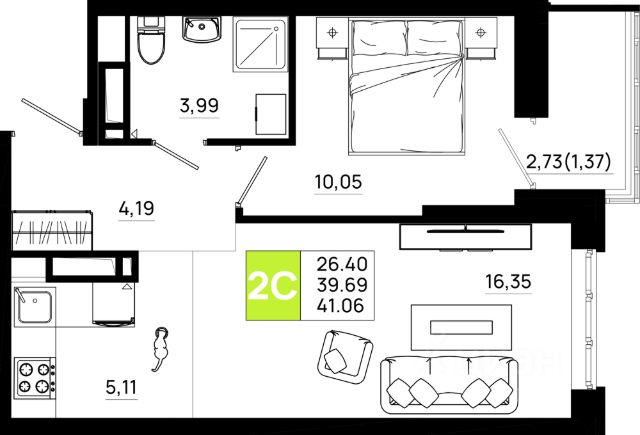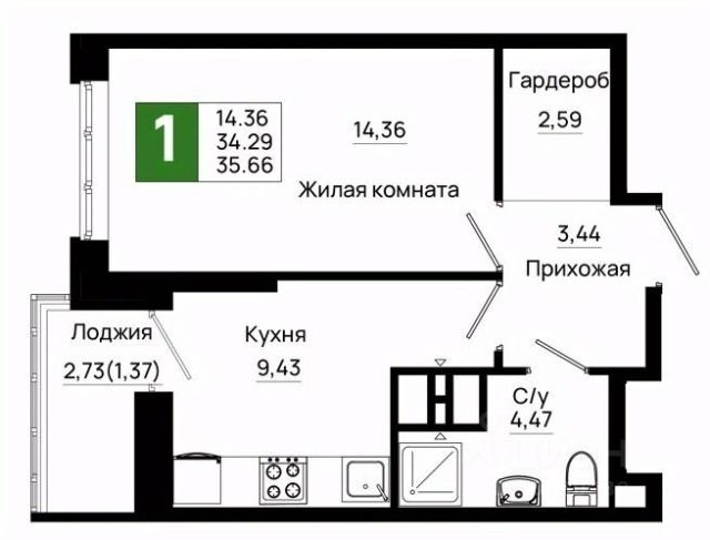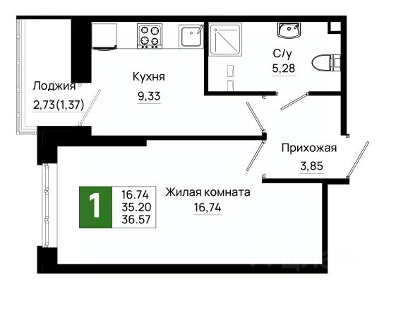 Однокомнатная квартира сочетает в себе практичность и домашний уют. Отдельная кухня обеспечивает чистоту и порядок в жилой зоне, а уютная комната легко зонируется под спальню и гостиную, создавая комфортное пространство для отдыха и повседневной жизни. Дополнительное преимущество — лоджия, которая расширяет полезную площадь: здесь можно организовать зону хранения, мини-оранжерею или просто наслаждаться свежим воздухом.