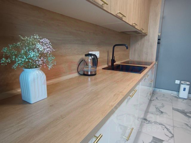 Остается мебель и техника ( стиральная машина спрятана в кухонном гарнитуре, встроенная посудомоечная машина , варочная , духовой шкаф, микроволновая печь)