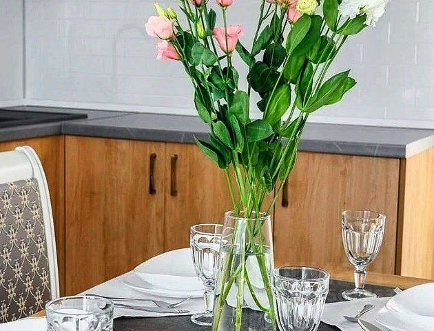 - Стильная обеденная зона возле окна,