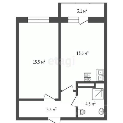 Площадь без лоджии, по документам: 30.8 кв.м;