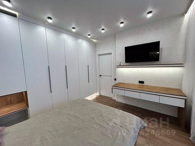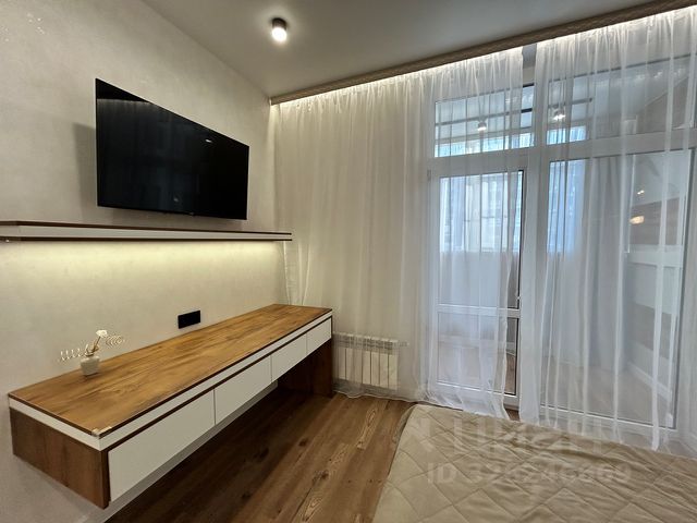 В квартире сделан современный евроремонт: качественные материалы, стильный дизайн. Просторная кухня правильной формы, предполагает комфортное размещение. Санузел совмещенный и выполнен в светлых тонах. Есть просторная лоджия, где можно обустроить зону отдыха или разместить цветы.