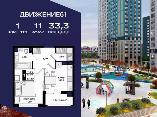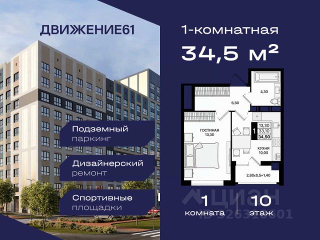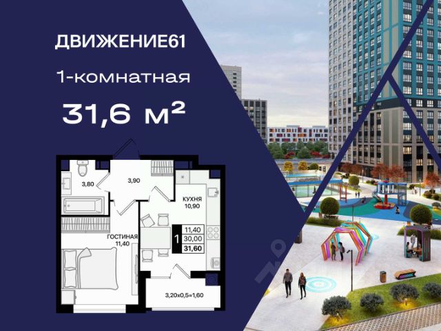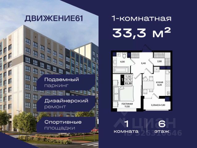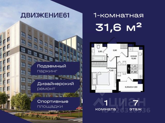 1-комнатная квартира в квартале "Движение61" — комфортный формат для жизни и инвестиций от надежного застройщика ЮгСтройИнвест. Если вы ищете современную, удобную и доступную квартиру в динамично развивающемся районе — 1-комнатная квартира в "Движение61" идеально подходит как для жизни, так и для сдачи в аренду. Комплекс строится крупным застройщиком ЮгСтройИнвест, мы известны высоким качеством строительства, продуманными кварталами и планировками, а также сдачей домов точно в срок. Площадь и планирова: В продаже 1-комнатная квартира — комфортный формат с продуманным пространством. Преимущества: — Отдельная спальня; — Правильные прямые формы комнат; — Большие окна и светлые помещения; — Место под гардероб/хранение. Квартал "Движение61" — современная среда для жизни: Зелёные аллеи и уютные дворы; Территория без машин — безопасно для прогулок; Детские и спортивные зоны; Удобное расположение и транспортная доступность; Рядом магазины, школы, сервисы; Паркинг, кладовые, инфраструктура нового уровня; Современный стиль застройки. Выгодные предложения на 1-комнатные квартиры: ПВ от 140 000 ₽ по ставке 6%; Ипотека от 0 ₽ первого взноса; Ипотека 0,11% на первый год; Семейная ипотека — от 3,5% / 3,9%; Теплый пол — в подарок; Скидка до 6000 ₽/м² при оформлении в день обращения; IT-скидка + IT-ипотека под 6%; Скидка для молодоженов; Скидка иногородним — 5000 ₽/м²; Для соцработников — выгода до 6000 ₽/м²; Для участников СВО — 8000 ₽/м²; Стоп-цена — фиксация стоимости на 60 дней; Паркинг от 46 800 ₽ при покупке квартиры. Можно подобрать вариант под любой бюджет и запрос. Надежный застройщик: ЮгСтройИнвест — один из крупнейших и наиболее стабильных девелоперов юга России. Постоянно внедряем новые стандарты благоустройства, сдаем дома вовремя и предоставляем выгодные финансовые решения. Условия покупки: — Ипотека любыми программами; — Рассрочка; — Материнский капитал; — Дистанционное оформление; — Безопасная сделка по 214-ФЗ. Кому подходит 1-комнатная квартира: Тем, кто хочет купить собственное жилье по выгодной цене; Молодым людям и семейным парам; Тем, кто инвестирует — ликвидная планировка; Для сдачи в аренду — высокий спрос; Для тех, кто выбирает современный квартал с инфраструктурой. Напишите — подберем подходящие планировки, вышлем цены и расскажем, какие акции действуют именно на 1-комнатные квартиры. 1-комнатная квартира в "Движение61" — удобный старт, разумная цена и благоприятный район для жизни!