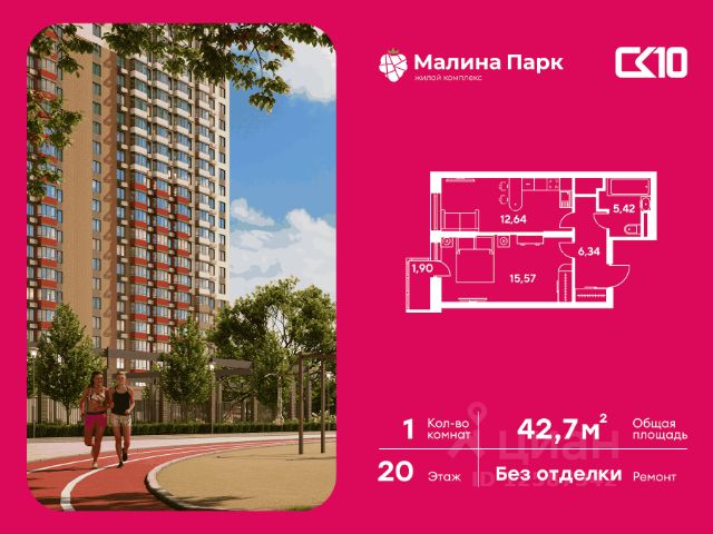 Продаётся 1-комнатная квартира в строящемся доме (Поз. 2-2), срок сдачи: II-кв. 2026, общей площадью 42.68 кв.м., на 13 этаже. Новый жилой комплекс "Малина парк" от группы компаний "СК10" расположен по адресу: г. Ростов-на-Дону, по ул. Малиновского.