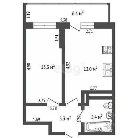 Эта студия отлично подойдет как для собственного проживания, так и для сдачи в аренду (вы сможете получать доход до 35 тыс. рублей в месяц).