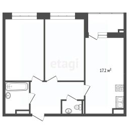 Общая площадь помещения порядка 55 Метров, плюс за счет высоких потолков квартира выглядит еще более просторно, визуально потолок "не давит" на Вас сверху, как в большинстве квартир. Подобных квартир в этом доме очень мало, и в продаже нет.