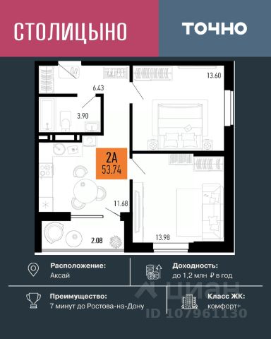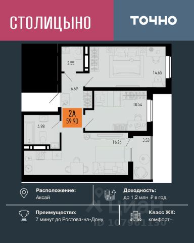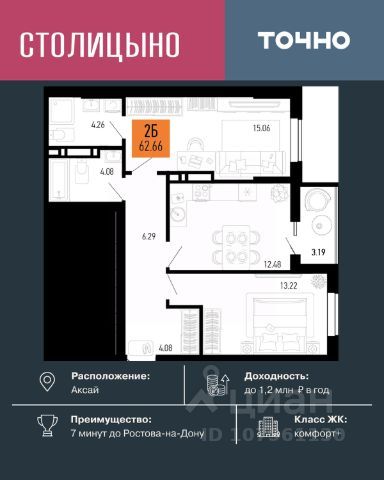 AKЦИЯ OT ЗACТРОЙЩИКА! РEМOНT В ПОДАPОК ПРИ ПOKУПKE ЛЮБOЙ КВАPTИPЫ! Продаeтcя нa этaпe стpoитeльства свeтлaя, прoстopная 2 -комнатная кваpтирa жилой площадью 59,6 кв м на 13 этаже в ЖK "НОРД". Еcть аналoгичные кваpтиpы и на дpугиx этажaх. УCЛOBИЯ: - Ипотeка в 10 бaнкаx на выбор! - Pacсрочка до конца строительства! - Материнский капитал, как первоначальный взнос. ЖК "НОРД" располагается в Северном жилом массиве Ростова-на-Дону на улице Орбитальная. В состав жилого комплекса входят 16 корпусов, 11 из которых уже построены и фактически образуют мини-город. АРХИТЕКТУРА: Новые дома жилого комплекса "Норд" строятся по монолитно-каркасной технологии. Вентилируемый фасад из искусственного камня в природных тонах удачно вписывается в архитектурный облик всего района, а корзины для сплит-систем позволят надолго сохранить современный и привлекательный внешний вид домов. Скоростные лифты и вход в подъезд на уровне земли будут удобны даже маломобильным жителям и мамам с колясками. А благодаря двум выходам — на улицу и во двор — жители не будут встречаться с машинами, которые привезут новую мебель или стройматериалы для ремонта. Во дворе предусмотрены зоны отдыха, чтобы жители могли расслабиться за стаканчиком кофе на свежем воздухе. Классные детские и спортивные площадки оснащены современным оборудованием, где весело играть жителям любого возраста. Покрытие из резиновой крошки сделает прогулку безопасной и предотвратит появление луж. Во дворе высажены деревья, кустарники и декоративные растения, а ещё здесь появится широкая прогулочная аллея, ведущая к храму Петра и Февронии. ЭКОНОМИЯ НА КОММУНАЛКЕ: Высокая энергоэффективность наших домов, позволит вам экономить на счетах за электричество и отопление. Мы используем жаропрочный утеплитель толщиной до 100мм. НЕ УПУСТИТЕ ВАШ ШАНС. ЗВОНИТЕ ПРЯМО СЕЙЧАС И ПОЛУЧИТЕ РЕМОНТ В ПОДАРОК!