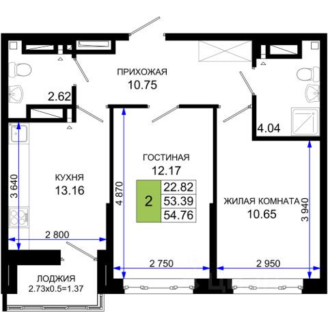 Две комнаты (12 и 18 м²) одна для вас, вторая ну, сначала для гостей, а потом, глядишь, и для малыша .