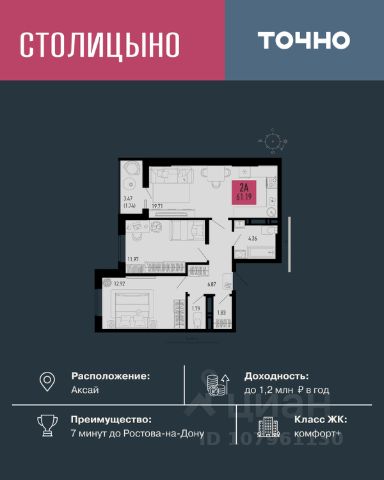 Особое внимание заслуживает балкон площадью 15,8 кв. м., где вы сможете насладиться утренним кофе или вечерними часами отдыха. Преимущество этого жилья - удобное расположение. Прямо под домом расположена детская площадка, и до ближайшей остановки общественного транспорта всего 1 минута пешком. Для владельцев автомобилей же удобно, что всего 5 минут езды до ТРЦ "Мега" и 20 минут до центра Ростова.