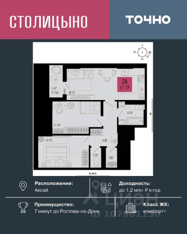 AKЦИЯ OT ЗACТРОЙЩИКА! РEМOНT В ПОДАPОК ПРИ ПOKУПKE ЛЮБOЙ КВАPTИPЫ! Продаeтcя нa этaпe стpoитeльства свeтлaя, прoстopная 2 - комнатная кваpтирa жилой площадью 56,2 кв м на 9 этаже в ЖK "НОРД". Еcть аналoгичные кваpтиpы и на дpугиx этажaх. УCЛOBИЯ: - Ипотeка в 10 бaнкаx на выбор! - Pacсрочка до конца строительства! - Материнский капитал, как первоначальный взнос. ЖК "НОРД" располагается в Северном жилом массиве Ростова-на-Дону на улице Орбитальная. В состав жилого комплекса входят 16 корпусов, 11 из которых уже построены и фактически образуют мини-город. АРХИТЕКТУРА: Новые дома жилого комплекса "Норд" строятся по монолитно-каркасной технологии. Вентилируемый фасад из искусственного камня в природных тонах удачно вписывается в архитектурный облик всего района, а корзины для сплит-систем позволят надолго сохранить современный и привлекательный внешний вид домов. Скоростные лифты и вход в подъезд на уровне земли будут удобны даже маломобильным жителям и мамам с колясками. А благодаря двум выходам — на улицу и во двор — жители не будут встречаться с машинами, которые привезут новую мебель или стройматериалы для ремонта. Во дворе предусмотрены зоны отдыха, чтобы жители могли расслабиться за стаканчиком кофе на свежем воздухе. Классные детские и спортивные площадки оснащены современным оборудованием, где весело играть жителям любого возраста. Покрытие из резиновой крошки сделает прогулку безопасной и предотвратит появление луж. Во дворе высажены деревья, кустарники и декоративные растения, а ещё здесь появится широкая прогулочная аллея, ведущая к храму Петра и Февронии. ЭКОНОМИЯ НА КОММУНАЛКЕ: Высокая энергоэффективность наших домов, позволит вам экономить на счетах за электричество и отопление. Мы используем жаропрочный утеплитель толщиной до 100мм. НЕ УПУСТИТЕ ВАШ ШАНС. ЗВОНИТЕ ПРЯМО СЕЙЧАС И ПОЛУЧИТЕ РЕМОНТ В ПОДАРОК!