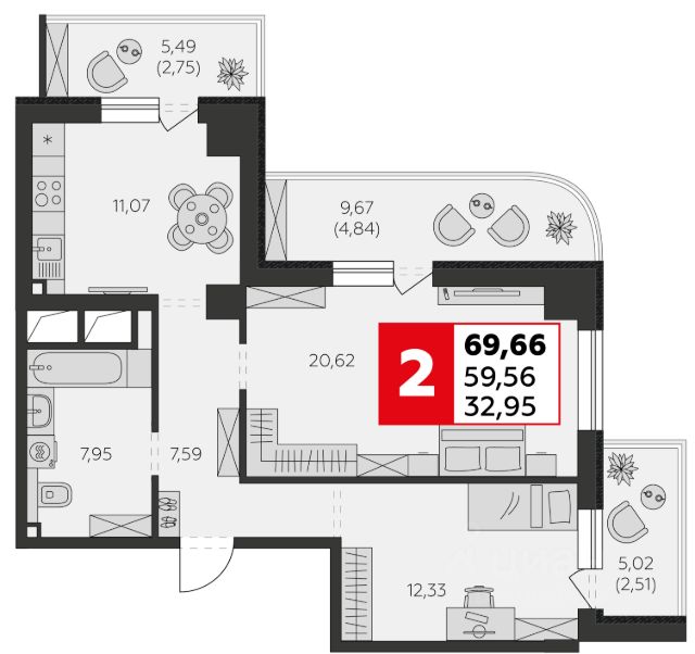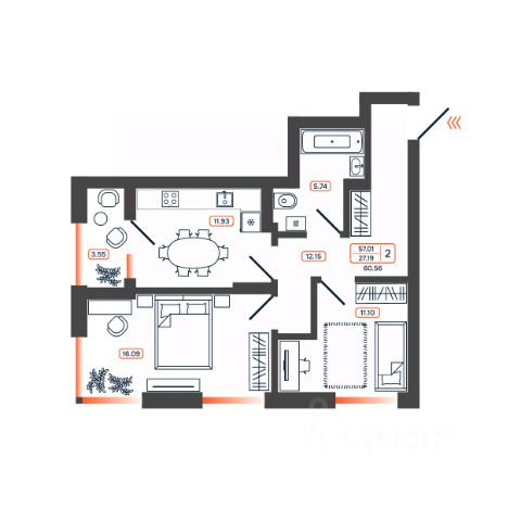 Продается просторная и уютная двухкомнатная квартира в современном доме 2009 года постройки. Общая площадь — 62,2 кв. м, из которых 34,2 кв. м составляет жилая площадь, а кухня — 12 кв. м. Квартира находится на 9-м этаже 10-этажного монолитно-кирпичного дома. Высокие потолки 2,7 м создают ощущение простора. Из спальни выход на лоджию, откуда открывается вид во двор. Со стороны кухни и детской открывается панорама на город.
