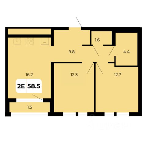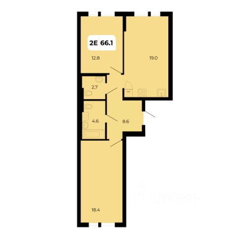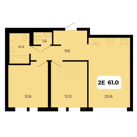 Комнаты раздельные, расположены в противоположные стороны, планировка "Бабочка", просторная кухня, из кухни выход на лоджию, застеклена. Просторный холл, с/у раздельный, душ кабина.
