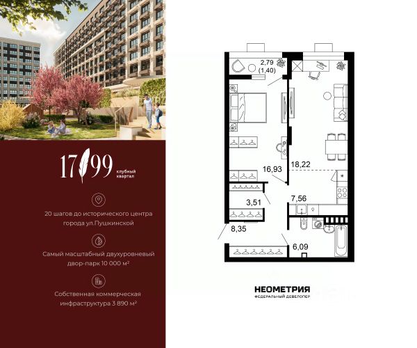 Продается квартира в клубном квартале "1799". Это истинный бизнес-класс в историческом центре Ростова. Особое сочетание уникальной локации и среды, где хочется создавать ту жизнь, которая подходит вам. Где каждое мгновение становится частью семейной коллекции лучших моментов. Квартал вдохновлен идеями великих и создан для великих. Образ хранителя ценностей — в каждой детали: имя и философия замедления, аристократичные фасады, лобби и холлы, семейные резиденции-истории и актуальное содержание. На приватной территории в 2,5 гектара четыре дома всего 10-этажей образуют масштабный двухуровневый двор-парк 10 000 м2 со smart-зонированием по возрастам и интересам. Среда квартала продумана для всей семьи: учебы и работы, спорта и отдыха, совместного досуга и теплых бесед. Гамак мечтателя, тайные места и маршруты, вертикальный сад пряных трав, амфитеатр и даже новогодняя ель. Резидентам доступны редкие для центра привилегии — природная тишина и свобода быть собой. Безукоризненный сервис и собственная коммерческая инфраструктура 3 890 м2, где все необходимое под рукой, позволяют жить в центре с бескомпромиссным комфортом. #ZMaC6g Купить 2-комнатную квартиру в готовой новостройке в Ростове-на-Дону.