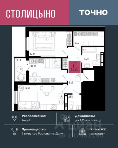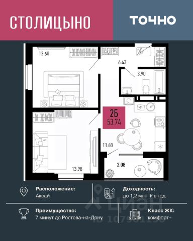 Дом сдан! Квартиры с ключами! Только в ЖК "Флора" есть возможность купить квартиру с использованием семейной ипотеки с детьми ЛЮБОГО ВОЗРАСТА! Акции, которые действуют сейчас в строящихся секциях: • Скидки до 1 мнл ₽ (учтено в цене) • Семейная ипотека от 3,5% на весь срок • Квартиры от 10 000 ₽/мес. Вы можете выбрать один из вариантов отделки: Черновая; Предчистовая (white-box); Ремонт под ключ (2 стилевых решения). Покупая квартиру в ЖК "Флора", Вы приобретаете: - Своя шкoлa - Фонтан - Два детскиx садa - Двoр без машин - Подземные парковки - Наземные многоуровневые парковки - Уникальная благоустроенная, закрытая, современная территория - Круглосуточное видеонаблюдение - Детские площадки - Спортивные площадки - Зоны для отдыха - Колясочные - Новый формат эргономичных планировочных решений и многое другое. Приобретайте НАПРЯМУЮ ОТ ЗАСТРОЙЩИКА без комиссии и переплат! 2-комнатная квартира в новостройке в Аксае.