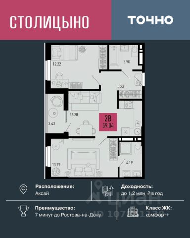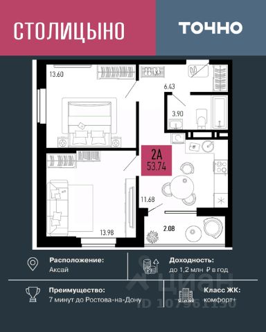 В продаже 2- комнатная квартира площадью 55,98 кв м на 6 этаже от застройщика. Ремонт в подарок! "Соседи. Лесной квартал" это жилой комплекс комфорт-класса, состоящий из 18 домов от 6 до 8 этажей. Расположен ЖК в уютном поселке Темерницком, всего в 10 минутах езды от Ростова-на-Дону. Соседи предлагают своим жителям спокойную жизнь вдали от городской суеты, при этом обеспечивая доступ ко всем необходимым удобствам и инфраструктуре для комфортного проживания. • Архитектура в скандинавском стиле с вентилируемым фасадом. • Стильные сквозные подъезды на уровне земли • Квартиры с террасой на первом этаже • Высота потолков от 2,7 м до 3,3 м • Колясочные в каждом подъезде • Двор без машин, благоустройство в экостиле с зонами отдыха • Детские площадки с интерактивными и классическими игровыми элементами из природных материалов для разных возрастов • Наземный паркинг на 1650 машиномест по периметру ЖК • Спортивные площадки и тренажеры во дворах, велодорожки и тактильные тропы для прогулок • Детский сад у дома, новая школа и фельдшерский пункт в 7 минутах • Супермаркеты, пункты выдачи заказов, остановки общественного транспорта в шаговой доступности Приобрести квартиру можно одним из способов: - рассрочка до конца строительства - оплата наличными - материнский капитал - ипотека - дистанционная покупка Продам 2-комнатную квартиру от застройщика в Аксайском районе Ростовской области.