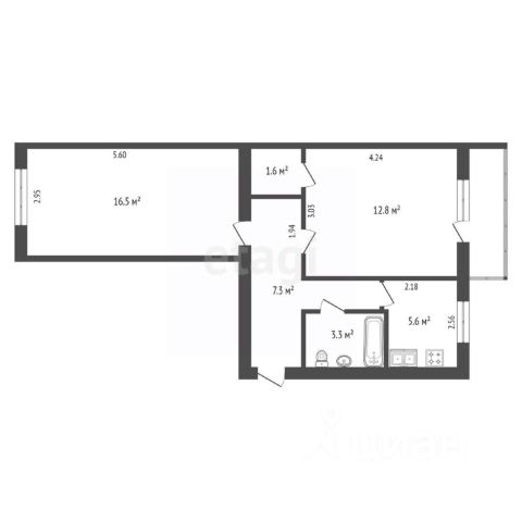 - жилая площадь 29,9 кв. м. (две раздельные комнаты площадью 13,4 кв.м. и 16,5 кв.м.);