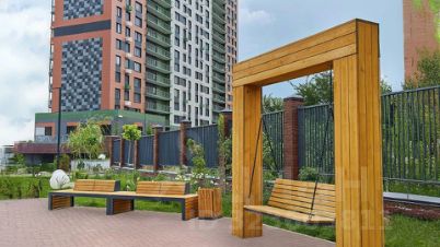 Тихий закрытый двор с новой детской площадкой, спортивным полем и турниками