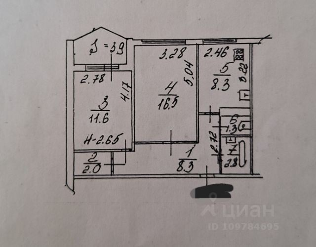 Площадь квартиры 50,8 м2 + застекленная лоджия 3,9м2.