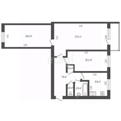 Арт. 64724087 Продается 3-комнатная квартира у моря в кирпичном доме площадью 57.5 кв. м.. Этаж пятый, дом пятиэтажный. Адрес: Ростовская область, город Таганрог, ул. Инструментальная 15.