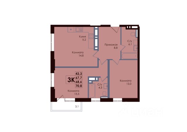 — Продуманная 3-комнатная планировка: две отдельные спальни + большая гостиная;