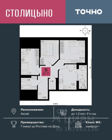 Литер 3.3, 11 этаж, 792. Микрорайон "Придонье" - прекрасная возможность жить в спокойном, зеленом и комфортном месте, всего в 7 минутах езды от Ростова-на-Дону. Небольшой и уютный Аксай создан именно для того, чтобы остановиться, провести время с семьей и отдохнуть от столичного ритма, при этом все возможности мегаполиса остаются под рукой. Квартира находится в современном микрорайоне с развитой инфраструктурой. Идеальный вариант для тех, кто ищет гармонию между тишиной, пространством для жизни и близостью к большому городу. Звоните для всех деталей и просмотра. Вся необходимая инфраструктура в пешей доступности Продуманное содержание Просторные дворы Безбарьерная среда Все для детей всех возрастов Школа на 1 810 мест Два детских сада, общая вместимость 770 мест Две Поликлиники Пожарное депо на 6 машин Опорный пункт полиции Станция скорой помощи на 2 бригады Бульвар Летний кинотеатр Зона для настольных игр Тропа здоровья Вело-беговая дорожка Воркаут зоны для взрослых и детей Зоны отдыха и релакса Тихие зоны с качелями и навесами Площадки для выгула собак + лапомойки Подземный и наземный паркинг Зарядные станции для электромобилей Видеонаблюдение Умная система контроля посетителей Современные умные домофоны Приобрести квартиру можно одним из способов: -субсидированная семейная ипотека от 3,5 % на весь срок -рассрочка -оплата наличными -дистанционная покупка Позвоните сейчас и забронируйте квартиру со скидкой!