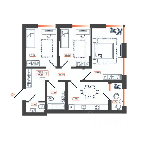Продаётся 3-комнатная квартира в строящемся доме (Дом 1.1), срок сдачи: II-кв. 2028, общей площадью 69.51 кв.м., на 6 этаже. Чувствовать гордость, когда любимая футбольная команда забивает гол, и с удовольствием спешить после работы на тренировку по мини-футболу или теннису. Так выглядит домашняя атмосфера в "Квартале Чехова", который находится в Ленинском районе. Здесь каждый день станет ценным экспонатом в вашей коллекции впечатлений.