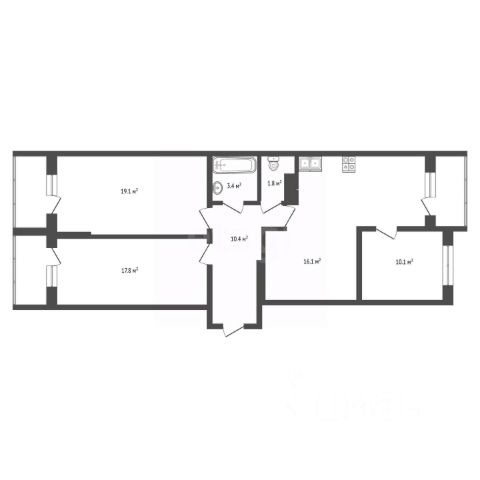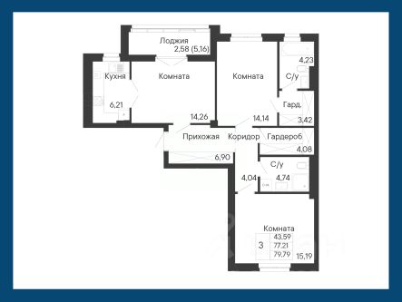 Данное планировочное решение светлая трехкомнатная квартира с двумя лоджиями, на кухне и в спальне. Предусмотрена постирочная.