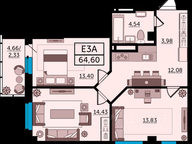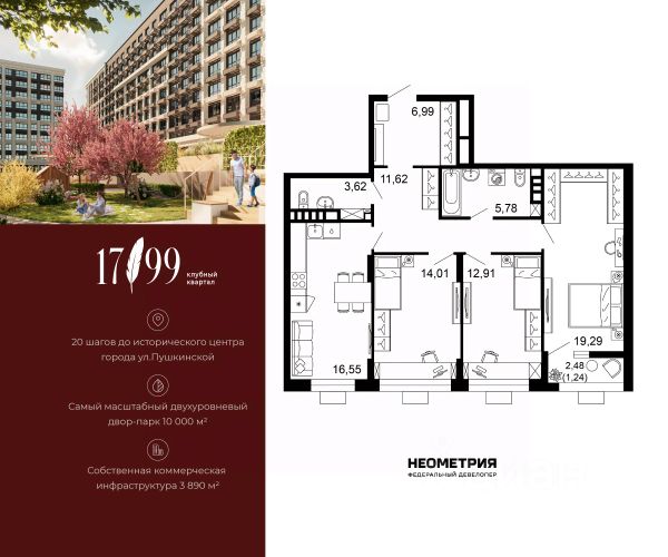 • Улучшенная черновая отделка: квартира сдается со стяжкой пола и межкомнатными перегородками, с шумо- и гидроизоляцией