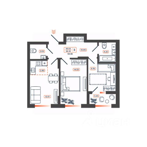 • ✅ Минимальная площадь: 58,8 м²
