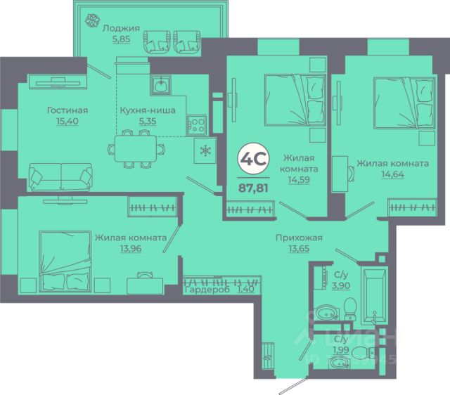Продаётся 3-комнатная квартира в строящемся доме (Поз. 1-1), срок сдачи: IV-кв. 2025, общей площадью 56.79 кв.м., на 23 этаже. Новый жилой комплекс "Малина парк" от группы компаний "СК10" расположен по адресу: г. Ростов-на-Дону, по ул. Малиновского.