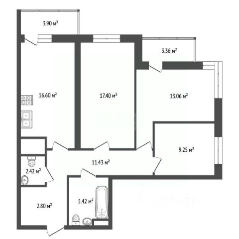 Продуманная планировка, две спальни, кухня-гостиная 40м2, две лоджии, кладовая/гардеробная.