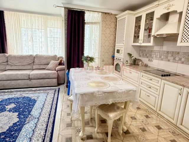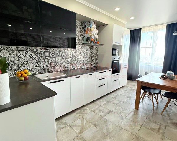 В квартире выполнен дизайнерский ремонт, который остаётся новому собственнику в подарок вместе с мебелью и бытовой техникой. Площадь 2-х раздельных жилых комнат составляет 30,5м.кв., кухни- гостиной- 28м.кв., в квартире есть 2 совмещённых санузла, гардеробная, лоджия застеклена, в переходной зоне коридора оборудовано рабочее место для учёбы или работы. Мастер-спальня для взрослых имеет панорамное остекление с 2-х сторон. Места общего пользования с полом из керамогранита имеют подогрев. Встроенная кухонная мебель из массива дуба оборудована бытовой техникой импортного производства: посудомоечная машина Воsсh, духовой шкаф и варочная панель Zаnussi, микроволновая печь Мidеа,холодильник двухкамерный Sаmsung, стиральная машина Sаmsung с окном загрузки.