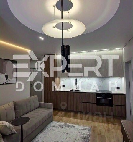 потолки на теневом профиле, смонтированы вдоль мебели , что выглядит максимально современно и аккуратно