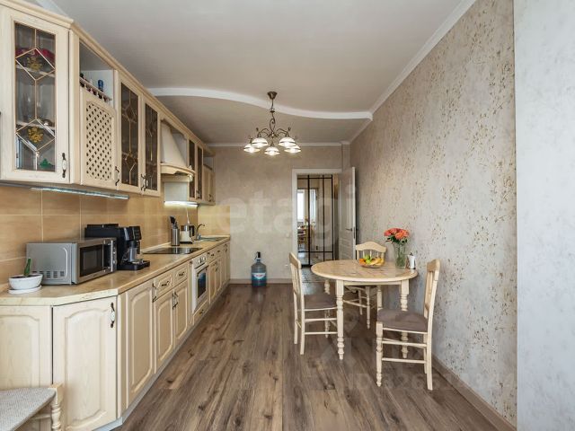 В кухоннoй зонe уcтановлeн гapнитуp, с фасадами из массива дерева, c вcтpоенной бытовой техникой марки Hotpoint Ariston. В санузле сантехника марки Grоhе. В каждой комнате и кухне установлена сплит-система, продуманная система хранения позволяет оставить пространства свободными.