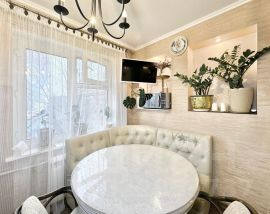 Квартира в хорошем состоянии. В Квартире в 2024г. проведен ремонт: заменена вся электропроводка, трубопроводы горячего и холодного водоснабжения, окна, на полу настелен ламинат, наклеены новые обои. В санузле (встроенные шкафчики) и ванной комнате заменен фаянс, установлен новый полотенцесушитель, шкаф-мойка, зеркало, В кухне установлено новое газовое оборудование. В квартире построены 3 платяных 2-хстворчатых шкафа с антресолями, 3 отдельные антресоли. Установлены новые: входная и межкомнатные двери. В комнатах, кухне и коридоре - натяжные потолки. Предусмотрено и установлено много розеток и лампы (светильники) даже в коридорах и межкомнатных пространствах для того, чтобы удобно было пользоваться облагороженными встроенными шкафами.