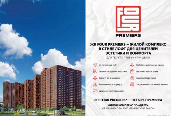 В продаже трехкомнатная квартира в новостройке, в стройварианте. Лучшее решение для жизни, под сдачу или для инвестиций. Планировка квартиры организована с учетом максимальной функциональности, чтобы обеспечить уют будущих жильцов. Основные преимущества, которые создадут комфортное пространство: раздельный санузел, гардеробная и большой балкон, который объединяет две комнаты. Наиболее выгодная цена на этапе строительства. Успейте забронировать квартиру напрямую от застройщика. В сотрудничестве с ведущими банками России предлагаем вам выгодные условия при приобретении квартиры в ипотеку в жилом комплексе: Первоначальный взнос: от 20% (обязательно). Процентные ставки: от 6% годовых (условия действуют по программе "Семейная ипотека"). Дом сдан. СУПЕР ПРЕДЛОЖЕНИЕ на сданные дома: без платежа до 20.12.2026 г.; первоначальный взнос составляет всего 25%; остаток суммы необходимо внести в течение месяца после окончания льготного периода. Только сейчас, при покупке квартиры ставка 0,11% на первые 12 месяцев! Успейте приобрести трехкомнатную квартир со скидкой 50% на зависимый паркинг. ЖК FOUR PREMIERS это современный жилой комплекс, который располагается в центре города по адресу, ул. Мечникова, 110Г. Данный проект выделяется яркой архитектурой в стиле лофт и множеством других особенностей: - Монолитно-каркасная технология строительства. - Облицовка кирпич в соответствии с ГОСТом. - Срок ввода в эксплуатацию IV квартал 2025 года. - 4 литера по 24 этажа. - В центре города. - 2-х уровневый подземный паркинг. - Магазины на 1-м этаже. - Зоны отдыха на крыше. - Собственный спортзал в доме. - Воркаут-зона. О застройщике Московская Строительная Компания ТОП-застройщик по объему текущего строительства жилья и ввода в эксплуатацию в Ростовской области. На рынке с 2012 года, за это время возведено 538 000 кв.м. жилья. На этапе строительства 325 000 кв.м. в 7 жилых комплексах г. Ростова-на-Дону. ГК "МСК" работает в соответствии с 214-ФЗ. Способ оплаты: При покупке квартиры от застройщика "МСК" Вы можете использовать все популярные сейчас способы: - 100% оплата. Когда у Вас есть вся сумма в наличии. - Рассрочка (подробные условия и размеры первоначального взноса уточняйте у менеджеров застройщика). Первоначальный взнос и график платежей определяем индивидуально. - Ипотека. Сотрудничаем с ведущими банками России и поможем подобрать выгодную ипотечную программу. - Материнский капитал или сертификат АЖП. Можно использовать на участие в долевом строительстве или на погашение ипотеки. Если у Вас возникли вопросы, позвоните или напишите нам. Менеджер все подробно расскажет и поберет для Вас лучший вариант. Бронирование квартиры совершенно бесплатно! Вам ответят в течении 30 минут.